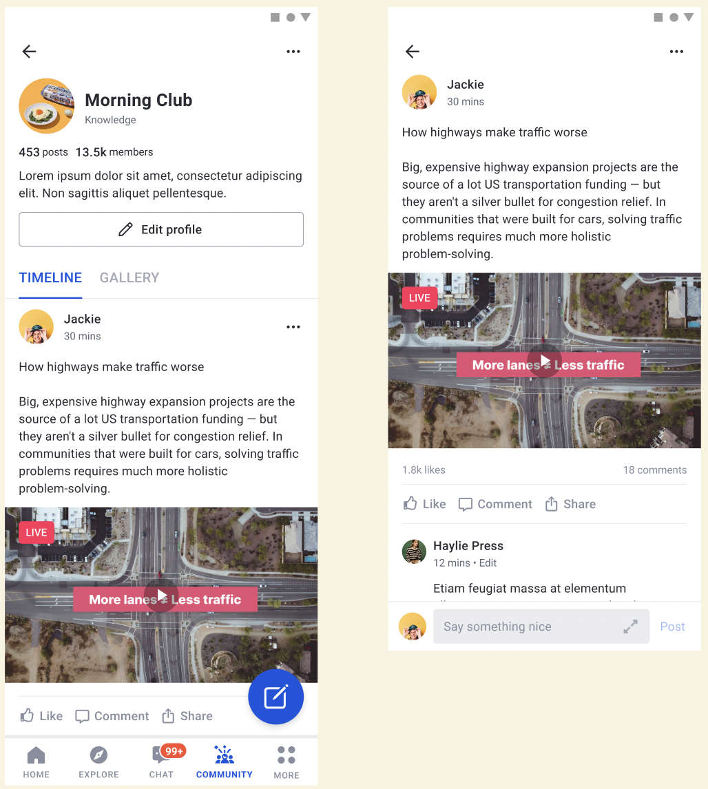 Tapping the play button in the livestream post will play the video in a full screen mode.