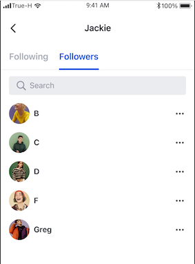 In this page , user will see the list of the following user (users who the target userId has been following) and the follower user(users who follow the target userId).